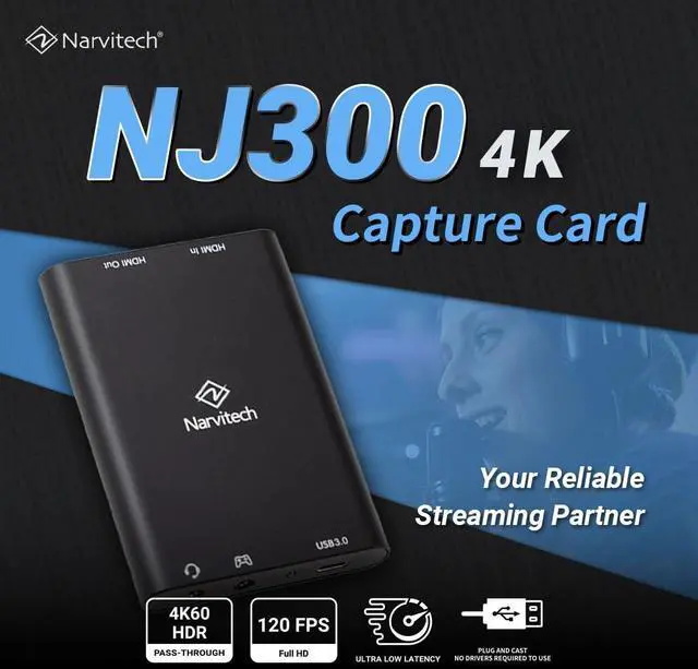 Turn Your Camera into a High-Quality WebcamWith the Narvitech NJ300 USB 3.0 HD60 4K Capture Card, you can easily connect your camcorder, action camera, or DSLR to your PC and use it as a high-quality webcam. Perfect for vloggers, YouTubers, and gamers, this capture card allows seamless integration of your webcam feed into your HDMI game source, enabling you to broadcast in real-time to platforms like Twitch, YouTube, and Facebook. For Gaming Broadcasters & Streamers4K60 Passthrough & 1080P60