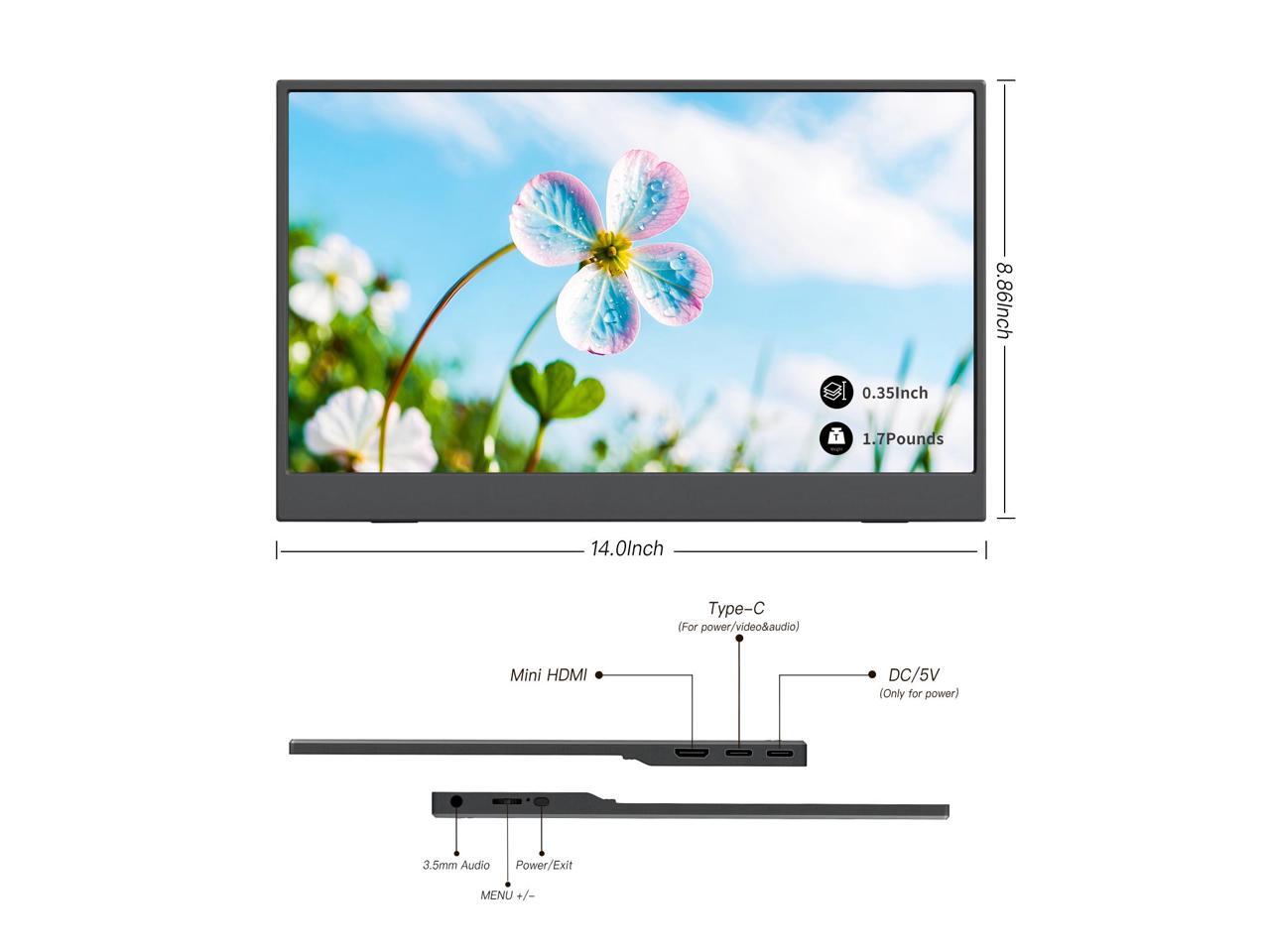 - Plug and Play:It doesnt require any driver installation to use this Second External Monitor.Computer Display with a USB Type-C ports and a Mini-HDMI port can be easily connected by plugging the HDMI cable or Type C cable.