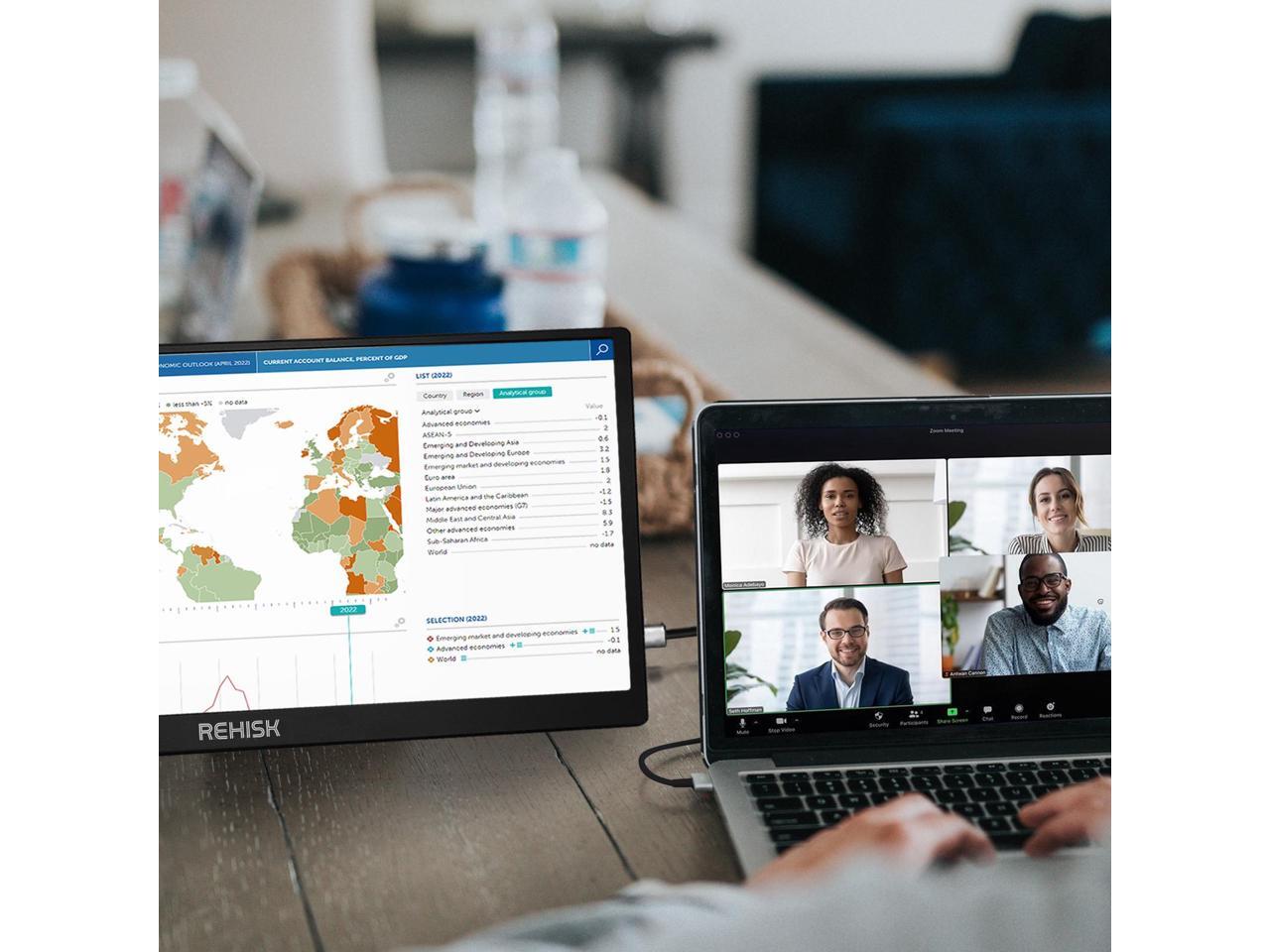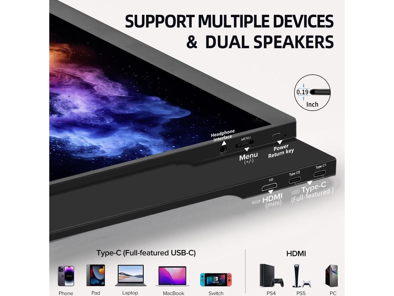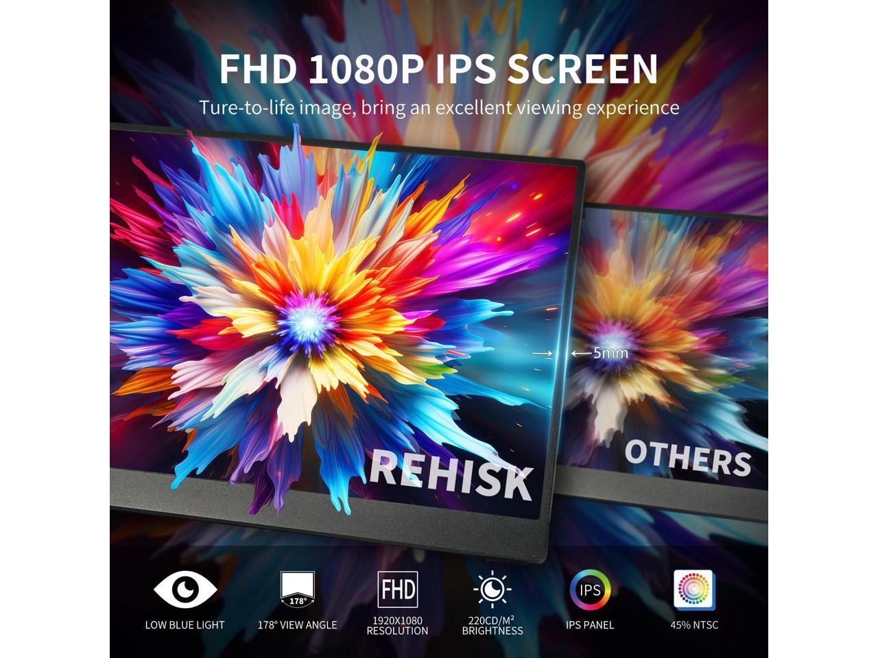 REHISK 15.6 inch Portable Monitor FHD 1080P gaming monitor External Monitor with mini HDMI and USB-C for Laptop PC Mac Phones PS4/5 Xbox nintendo switch built in 2 speakers