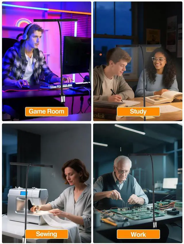 5 Colors+9 Brightness+Memory Function: The desk lights for home office have 5 lighting colors: 3000K-6500K, and each lighting color has 9 brightness. The desk lamps for office with memory function can remember the lighting mode of last use, very convenient. Dimmable clip on desk lamp with clamp is multi-purpose because of its 45 lighting modes. The clamp light & clamp lamp can be widely used for desk lamps for office desk lamp, monitor light bar, study lamp, computer light bar, craft light, desktop lamp, monitor lamp, workbench light, desk light bar, task lamp, dorm desk lamp for college dorm room, etc. This LED desk lamp is a good office organization & work from home essentials.