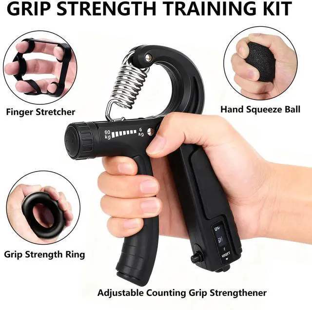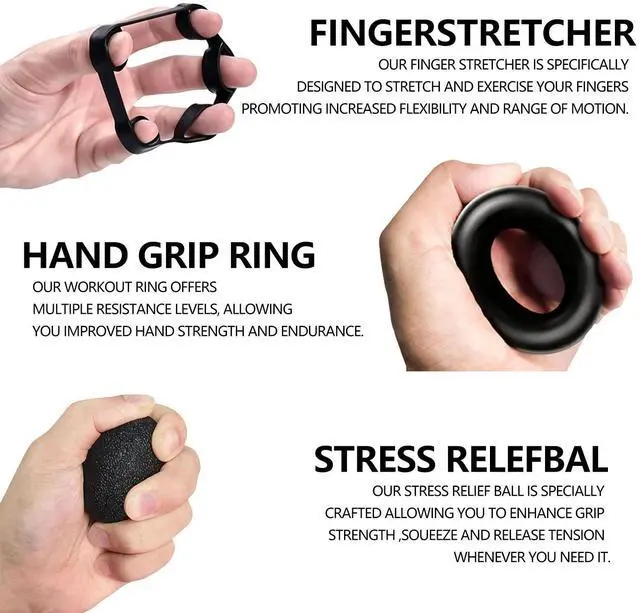 Elevate your grip strength and overall hand fitness with our versatile 5-pack set. Featuring adjustable hand grippers, finger tools, and a stress relief ball, this kit offers a complete solution for targeted training and rehabilitation. Unlock your full potential today.