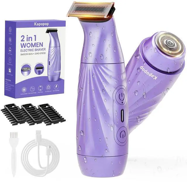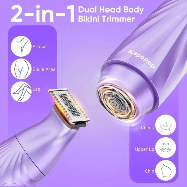Versatile 2-in-1 Grooming SolutionYour all-in-one kit for head-to-toe smoothness. Features dual-head versatility: a wide blade for legs and underarms, and a precision head for bikini shaping and facial touch-ups. A must-have tool for fast, reliable hair removal at home or on the go.