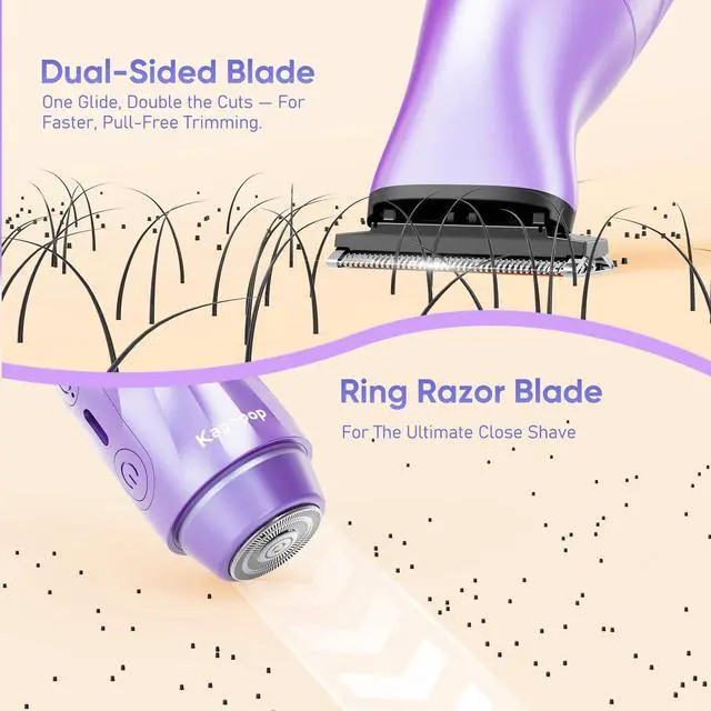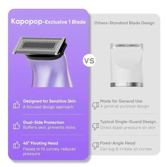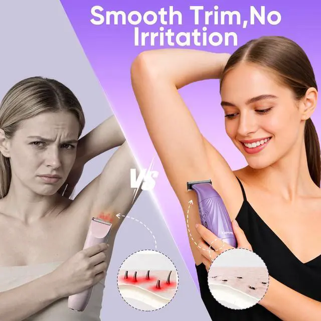 Gentle & Painless for Sensitive SkinEngineered with hypoallergenic blades and rounded R-shaped edges, our trimmer glides smoothly over skin to prevent nicks, razor bumps, and irritation. Designed specifically for the bikini line and sensitive areas, it delivers a comfortable, effortless shave every time.