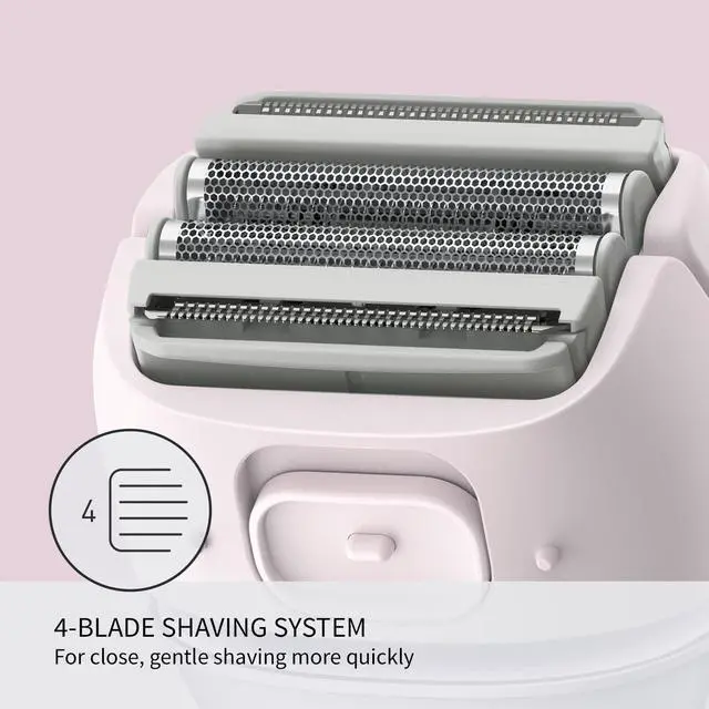 Four floating blades and ultra-thin foils are made with hypoallergenic stainless steel to keep skin free from razor bumps or irritation. The blades and foils gently move up and down over the skin, hugging your curves and giving you a clean, gentle shave.
