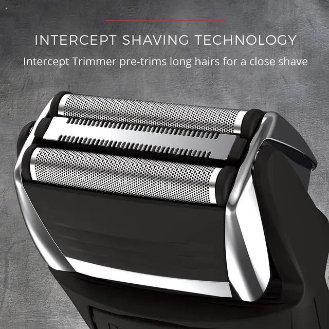 Shave close with the F5 Foil Shavers for men with Intercept Shaving Technology. This shaver has a 3 stage cutting system that uses the intercept tool for pre-trimming longer hairs and two flexible foils for a close shave electric shaver. Plus, youll get up to 20 days of shaving between charges with the mens shavers electric cordless rechargeable battery that delivers 60 minutes of cordless runtime. The F5 foil razor combines power and technology for a great shaving experience.