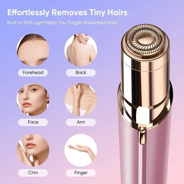 Facial Hair Remover for Women- as Seen on TV Painless Face Shaver -Mini Hair Remover, Electric Razor Shaver Portable Bikini Epilator for Lips, Chin, Armpit, Peach Fuzz, Fingers, Neck, Cheek (Rose Gold)
