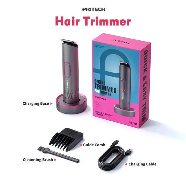 Precise Blades To Prevent Fraying: This hair trimmer women is equipped with precise stainless steel blades, ensuring the cutting process will not cause any fraying. Additionally, to prevent skin scratches, we have chamfered every edge of the blades