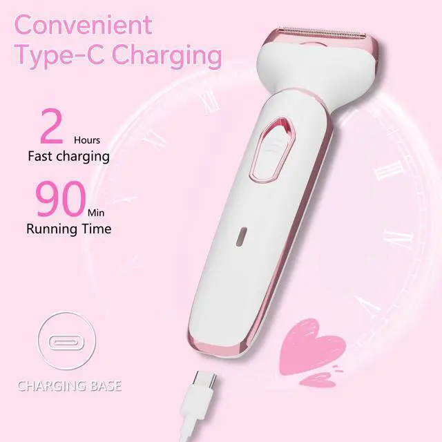 Fast Charging and Portable: This women's electric shaver is equipped with a USB cable for convenient charging outdoors or on vacation, which can be easily charged through a variety of devices such as power bank, computer, laptop and socket, the bikini trimmer runs up to 90 minutes on 2 hours charge. USB charging is easy to carry, making it ideal for travel and travel, Lets enjoy extra portability with our razors.