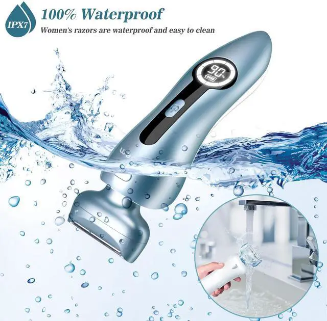 - Electric razor for women with IPX7 100% waterproof design even in shower make it convenient and safe for shaving and can cleaned in water under running water. Dry or sensitive skin can also be used well and wet or dry to use are veryconvenient.