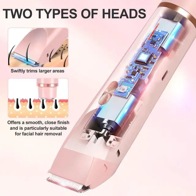 2-IN-1 Electric Shaver: Nursetek electric bikini trimmer for women comes with 2 efficient shaving heads, dual-head design, no need for tedious blade changes. The body shave head is designed for larger areas like bikini line, armpit, legs, and arms. While The round shaving head offers a smooth, close finish and is particularly suitable for face hair removal.