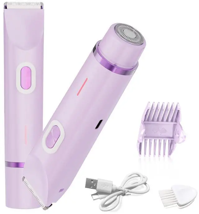 Bikini Trimmer for Women,2-in-1 Electric Razors for Womens with Painless Ceramic Blades,Waterproof Wet & Dry Use,Rechargeable Dual Head Electric Shaver for Pubic Legs Underarm Face Hairs& Body