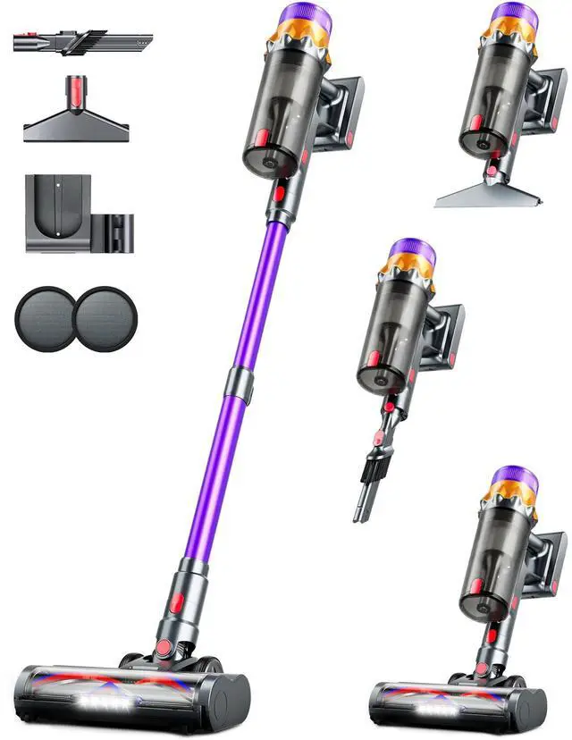 Up to 60 Minutes Runtime & Wall-Mount ChargingThis cordless vacuum is powered by 7×2600mAh high-capacity batteries and runs for up to 60 minutes in Min mode, making it perfect for whole-home cleaning without interruptions. Comes with a wall-mounted charging dock for convenient storage and charging, so its always ready to use