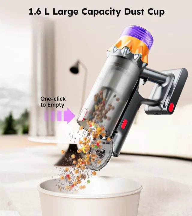 Smart LED Display & Touch ControlThe intelligent LED screen lets you monitor real-time battery life, dust cup full indicator, and filter clog alerts. Easily switch between 3 suction modes (Min/Mid/Max) with a simple touch for optimal cleaning performance