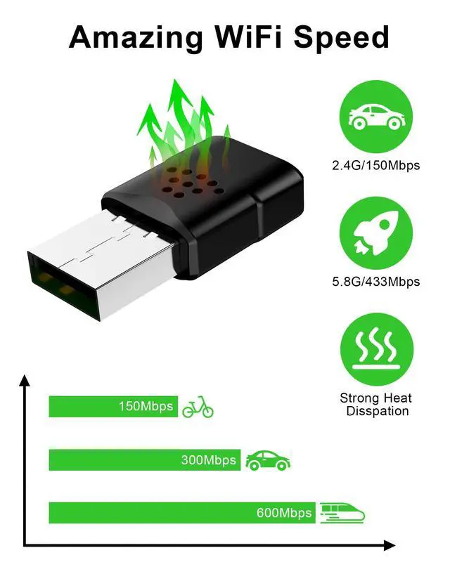 Fast and Stable Network ConnectionThis USB Wi-Fi adapter for PC delivers blazing-fast speeds of up to 433 Mbps on the 5 GHz band and 150 Mbps on the 2.4 GHz band, perfect for lag-free gaming, streaming, and browsing. Ideal as a Wi-Fi adapter for desktop PC, it ensures a stable connection for both home and office setups.