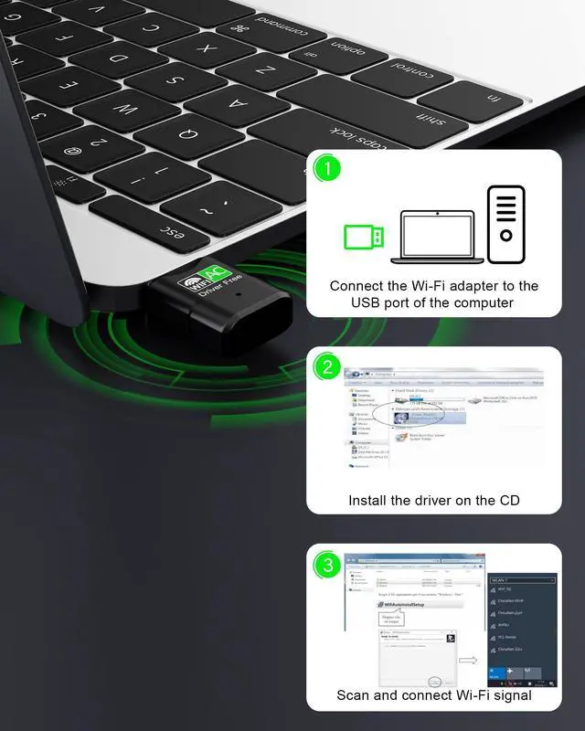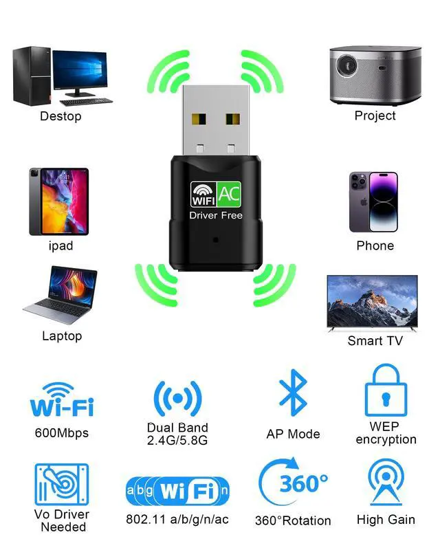 Built-in Drivers for Hassle-Free SetupThe USB Wi-Fi dongle comes with pre-installed drivers, eliminating the need for CDs or manual downloads. Simply plug this PC Wi-Fi adapter into your desktop or laptop, and its ready to useno technical expertise required!