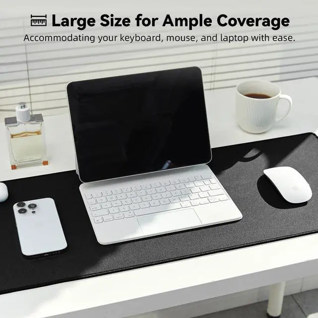 The large mouse pad firmly grips your desk, providing a secure, slip-free surface for consistent support and the edges are meticulously stitched, ensuring a refined look and added longevity.