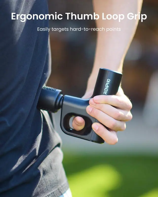 The massage gun delivers deep tissue percussion to relieve muscle soreness, reduce stiffness, and speed up recovery after workouts or daily activities.