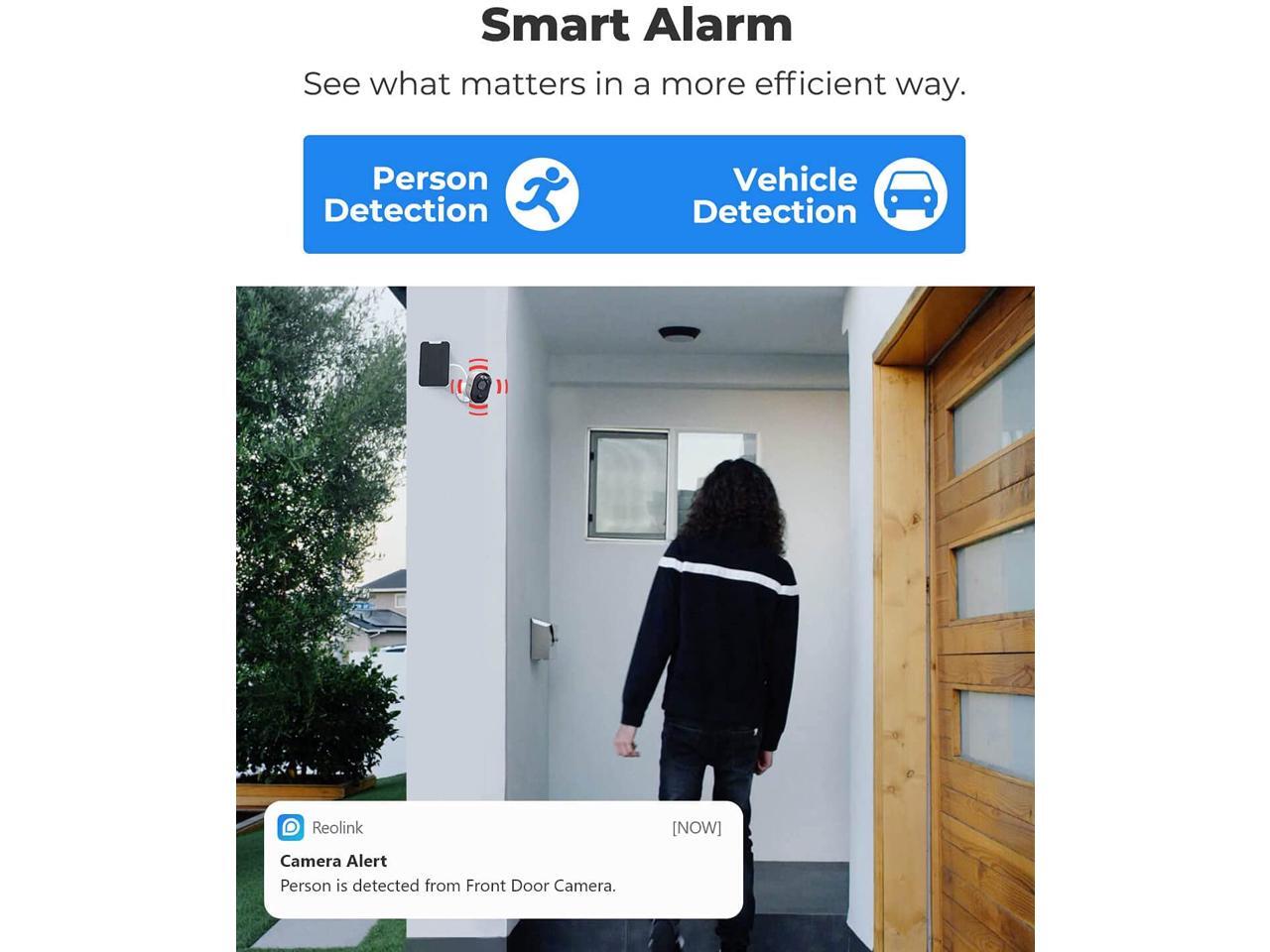 - Person/Vehicle Detection: Powered by smart motion detection technology, this camera can tell people and vehicles from other objects and no false alarm ever.