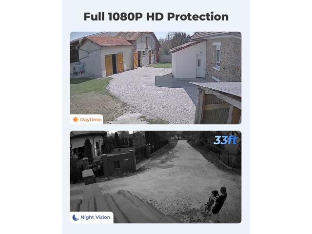 - 3MP HD, Stunning Night Vision: 100° wide field of vision, the outdoor security camera captures sharper videos and clearer night-vision footage up to 33ft than 720p cameras.