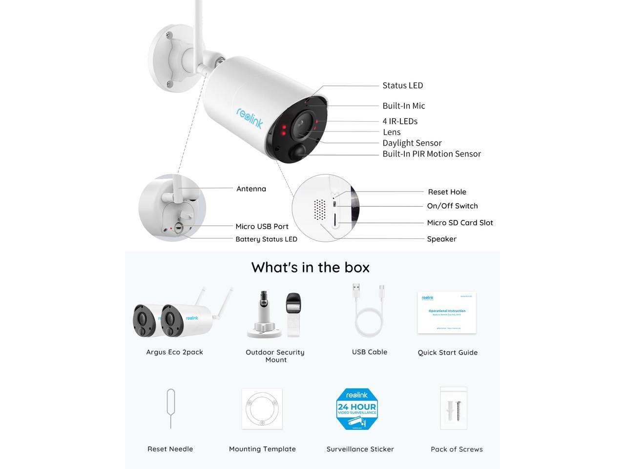 - Multiple Power Options: With rechargeable battery, long lasting power per charge. Reolink Solar Panel is another perfert option to extend the usage time.