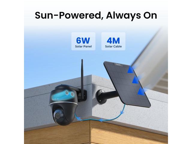 - 100% Wire-Free Easy Setup: The camera works on 2.4/5GHz Dual-Band Wi-Fi 6 and continuously powered by the new 6W solar panel, freeing you from frequent battery charging hassles.