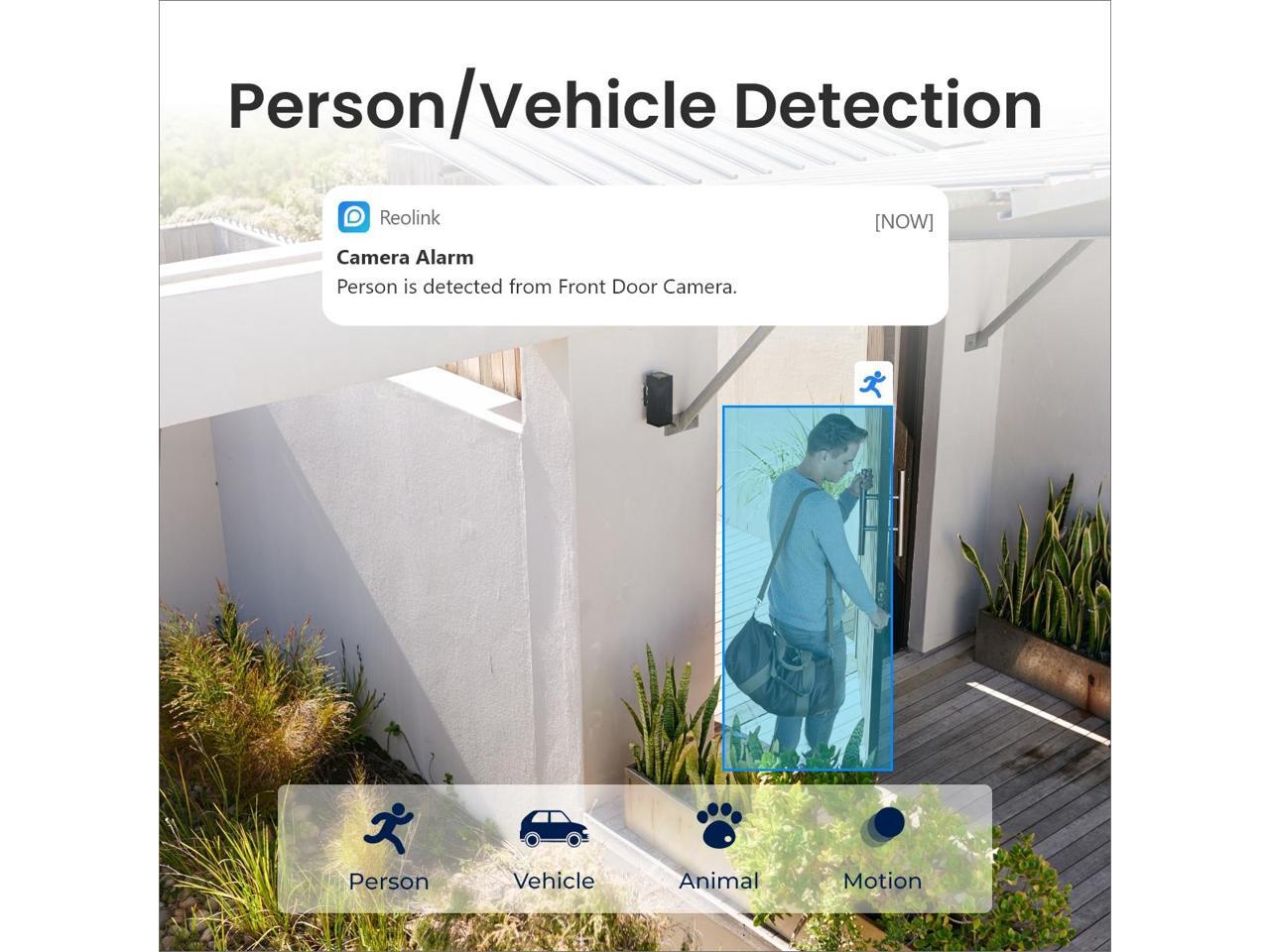 - Smart Detection Reduces False Alarms: Equipped with an advanced sensor and intelligent algorithms, this battery camera brings more accurate alerts, and you can set the detection sensitivity and zones for person/vehicle/pet motion to further reduce unwanted alerts.