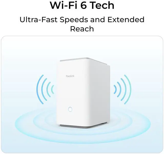Unlock top-tier connectivity with Wi-Fi 6 support. Pair with Reolink Wi-Fi 6 cameras for seamless, lag-free data transmission and live streaming and enjoy up to 1000 square meters* of signal coverage.