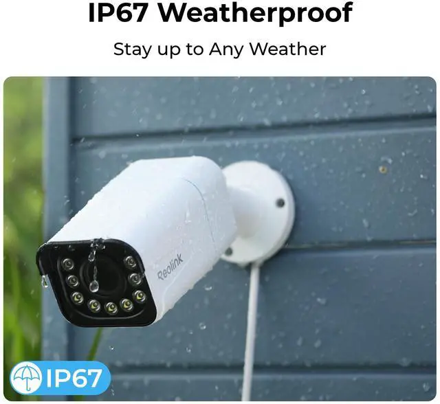 With an IP67 certification for weatherproofing, this camera offers robust defense against dust and rain, ensuring reliable performance in challenging outdoor conditions.