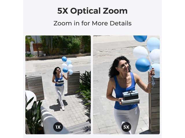 4K ULTRA HD & 5X OPTICAL ZOOM & 123°WIDE VIEWING ANGLE: This camera with a 123° diagonal angle can get more areas covered, allowing you to capture bountiful details in 4K ultra-high definition. And its advanced 5X optical zoom empowers you to zoom in/out, bringing distant details closer without compromising its clarity.