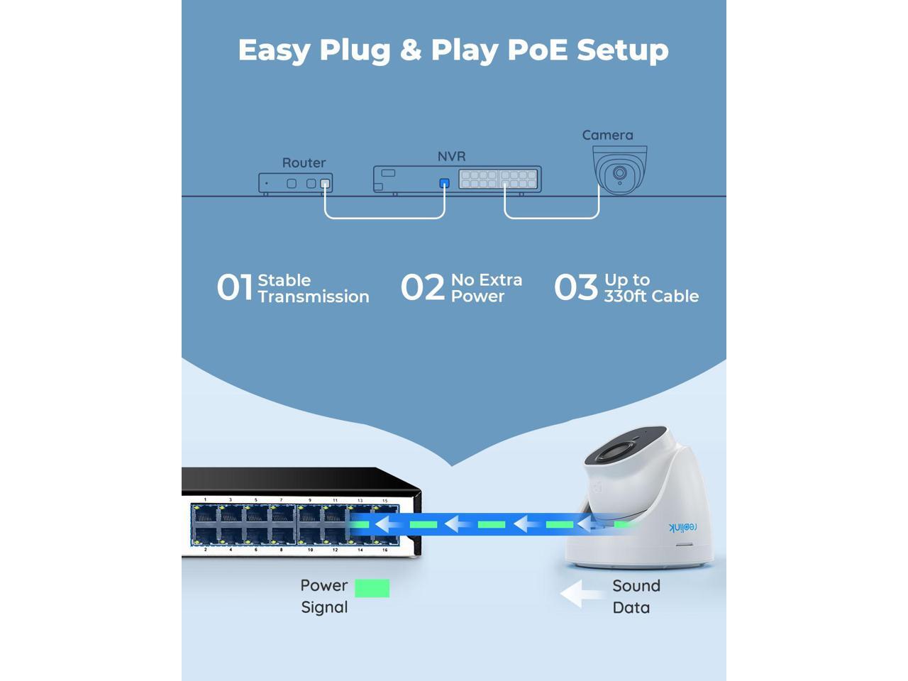 - Plug and Play PoE System A simple PoE connection makes it easier to set up and install your home security camera system.