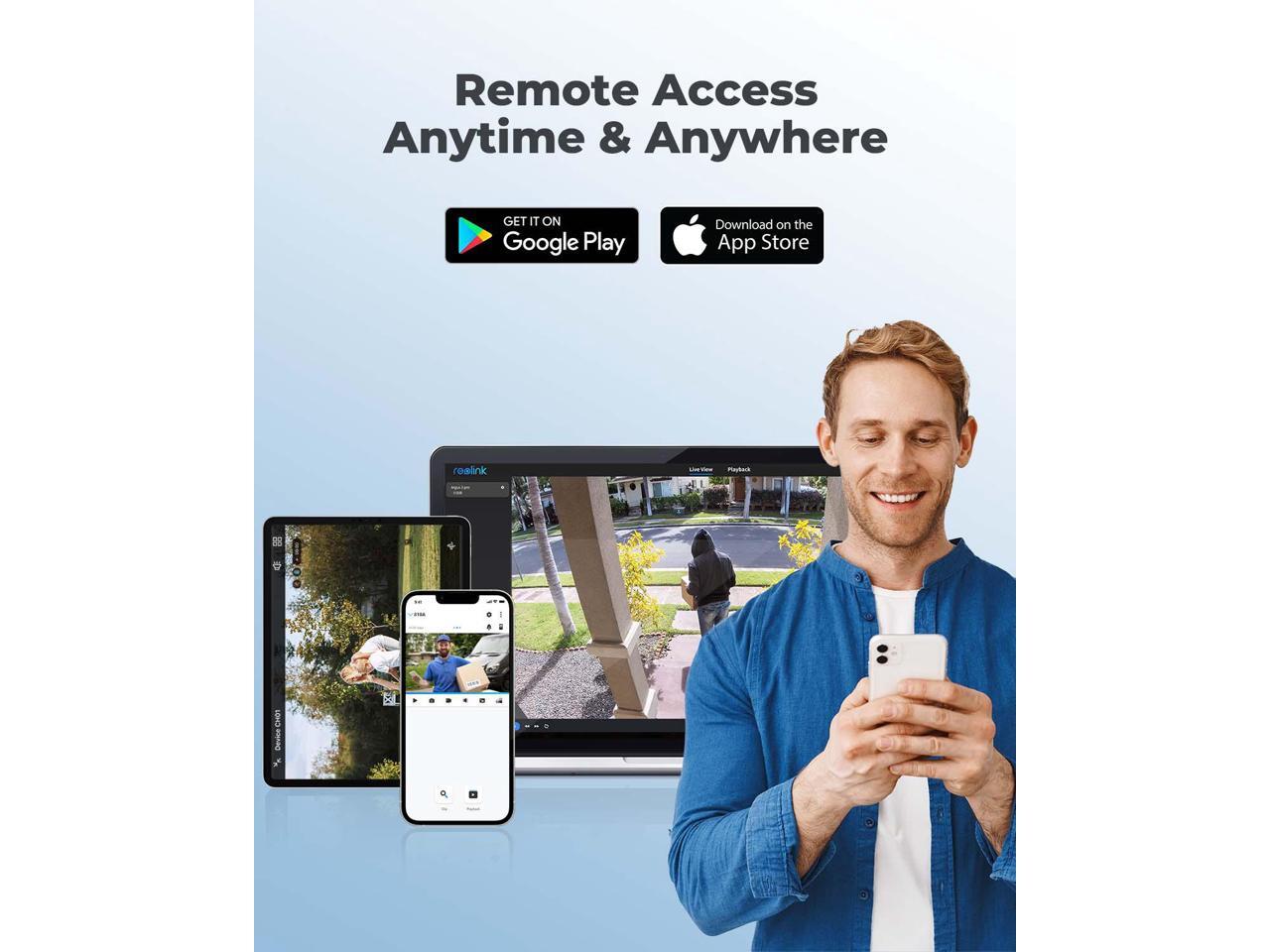 - Remote Access and Playback The free Reolink app allow you to access all your cameras remotely, no matter how many you have.