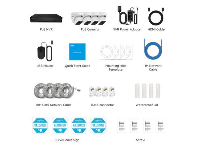 - Plug and Play PoE System The system includes four 60ft CAT5 network cables, which allow for easy installation and set-up. After connecting the security cameras to the NVR ports, recording and live views can be seen within seconds via an HDMI monitor.
