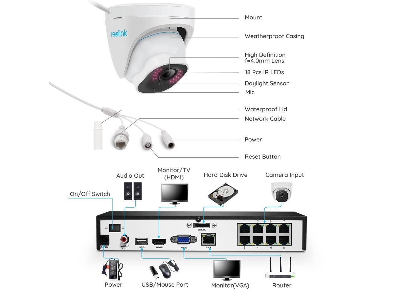 - 4K Ultra HD Each camera in this PoE camera kit captures videos of 3840*2160 resolution. With the built-in microphone, cameras can also pick up ambient sound for an extra layer of security.