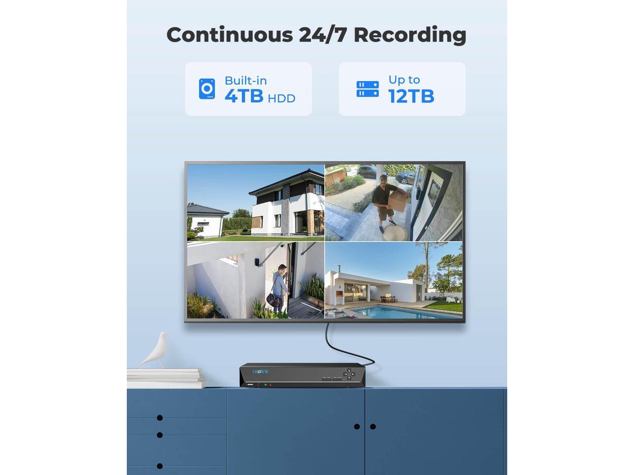- 24/7 Recording - This 4K PoE video surveillance kit supports 24/7 continuous recording. You will have an all-day video without missing a beat. The video will be stored in the pre-installed 4TB HDD.