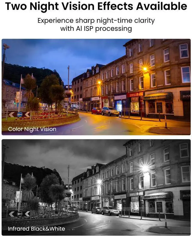 With spotlights illuminating your surroundings, it captures clear nighttime footage with vibrant colors and rich details, ensuring you never lose sight, day or night.