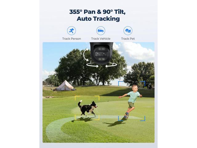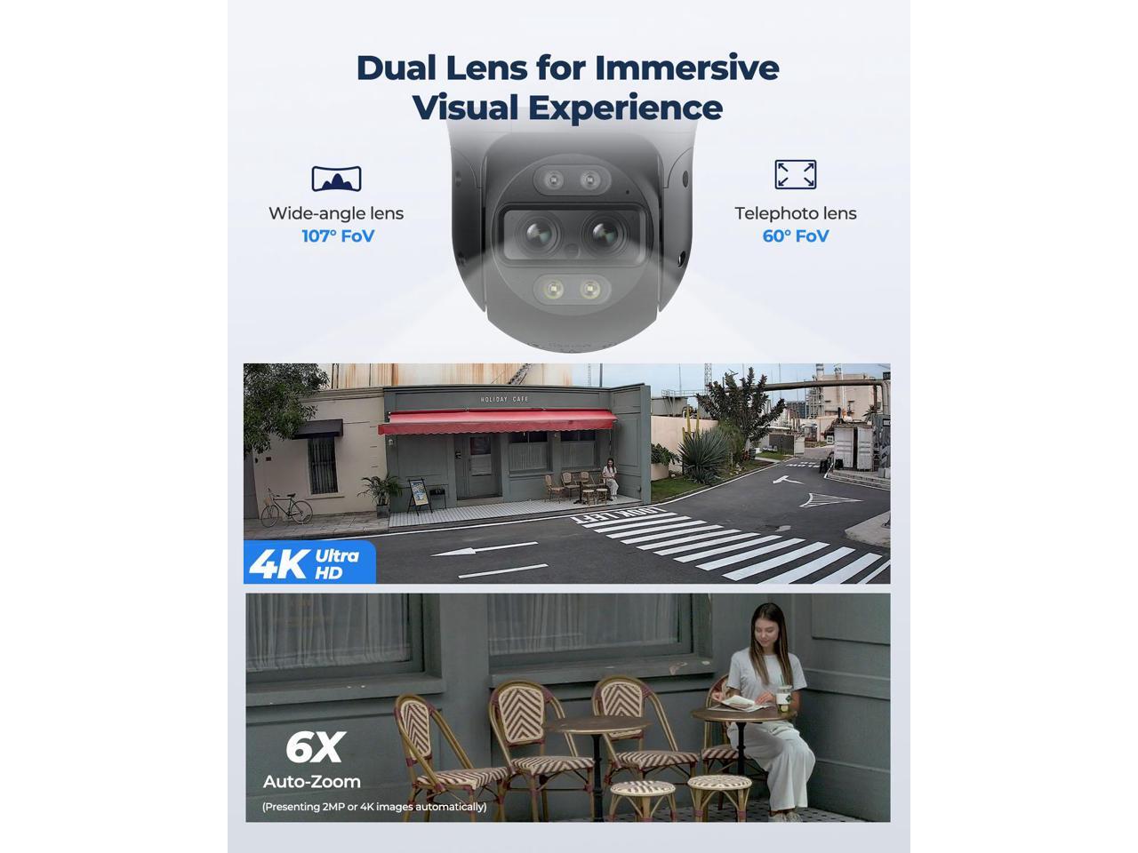 - AUTO TRACKING & 6X HYBRID ZOOM: The wide-angle PT lens tracks the target; while the telephoto lens zooms in to focus on details. The close-up view delivers 2MP or 4K views automatically. You can choose three different tracking modes to better suit your needs.