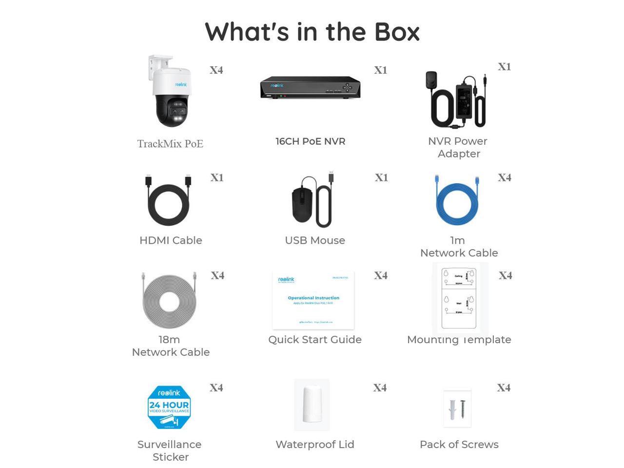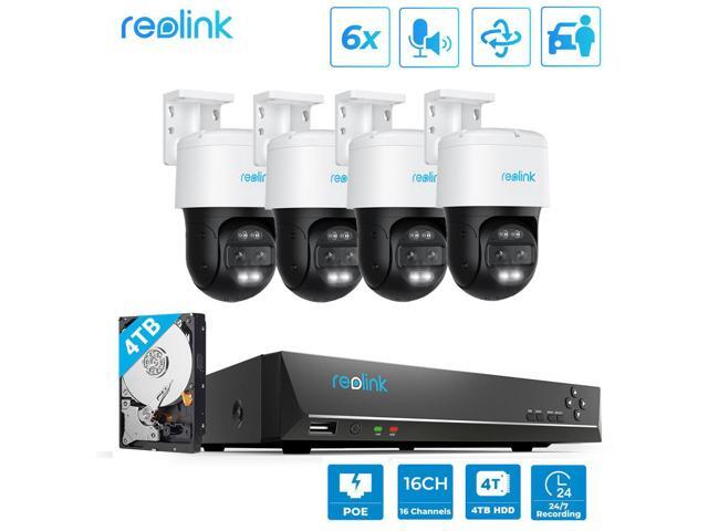 REOLINK 16CH 4K PTZ Security System, 4pcs Trackmix PoE, IP PoE Outdoor Cameras 6X Hybrid Zoom, Auto Tracking, Human/Vehicle/Pet Detection +1pc RLN16-410 8CH NVR with Built-in 4TB HDD H.265