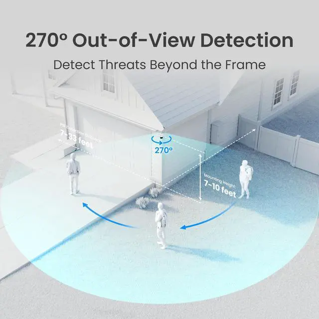 The PIR sensor extends the detection range to 270°, ensuring threats are spotted even before they enter the frame.
