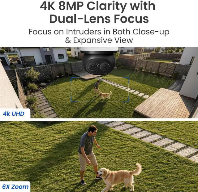 Featuring both telephoto and wide-angle lenses, experience exceptional 4K 8MP clarity in an expansive view and capture precise details at 6x hybrid zoom.