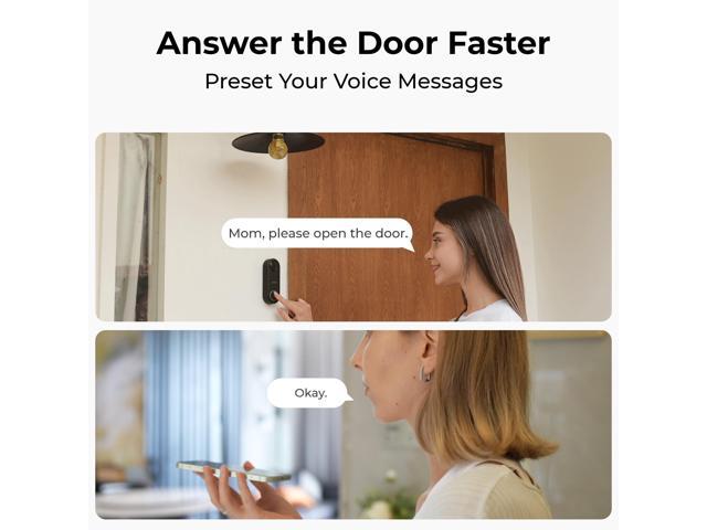 - Answer the Door Faster! With its built-in mic and speaker, you can hear and talk back to the visitors even if you're not at home. You can also preset voice messages or automatic replies for times when you're occupied.