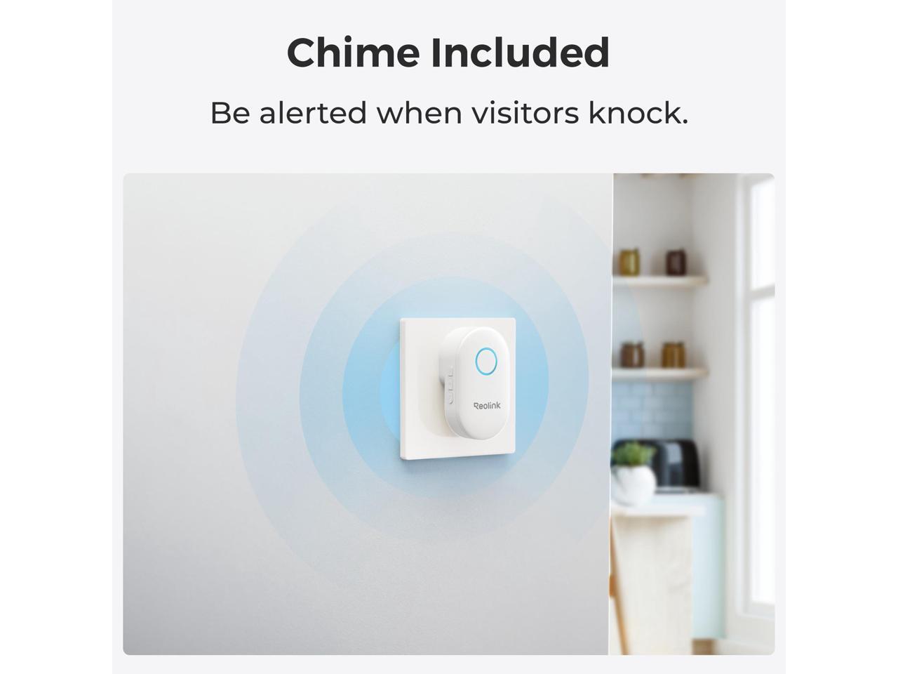 - Chime V2 Included! Plug the chime included to any electrical socket at any room and be confidently alerted when visitors "knock". You can choose 1 of its 10 tunes and adjust its volume.