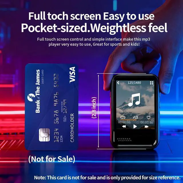Model: M8 Brand: Resvocal Weight: 30g (1.06 ounces) Size: 2.36*1.57*0.67 lnch (60*40*17 mm ) Screen: 1.8 inch TFT LCD Screen USB port: Micro USB 2.0 Memory: Built-in 20GB Supports external expanded memory up to 512GB Speaker: Built-in Speaker, Bluetooth Version: Bluetooth 5.4 Language: Supports 28 kinds of languages , 3.7V 300mAh Ebook: TXT Picture format: BMP, JPG Record format: MP3, WAV Audio format: MP3,WMA,APE,FLAC,WAV,OGG,ACELP etc. Functions: Music Playing,Bluetooth,FM radio ,E-book,Recorder,Calendar,Alarm Clock,Stopwatch Support System: XP (Home Pro with SP1 SP2 SP3) 32bit / Windows 7 10 64bit Charger output:500mA-1A