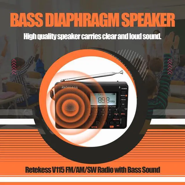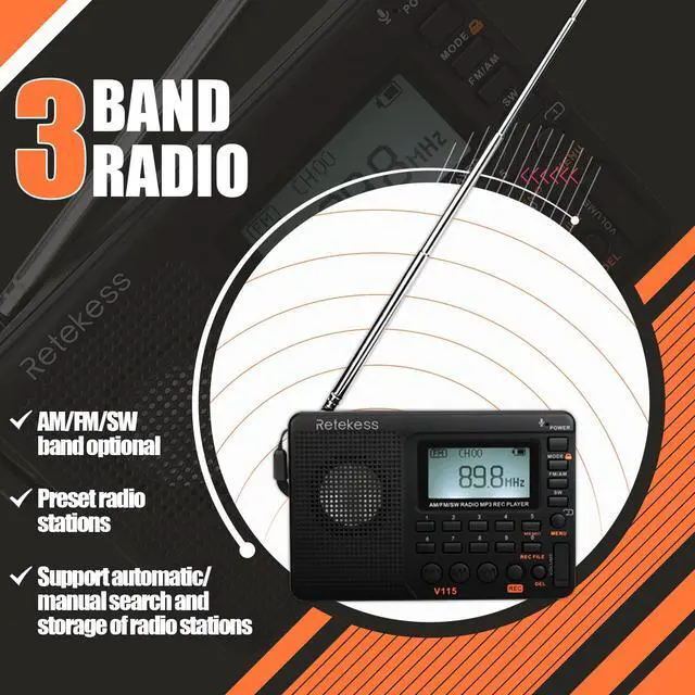 The Retekess V115 radio can record radio. The radio offers three recording modes: Mic+Cable in+Radio.