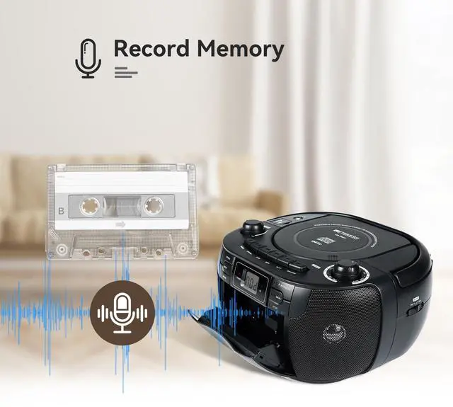 Record CD, radio or external voice to tape; save your favorite CD music or radio; listen to it again anytime.