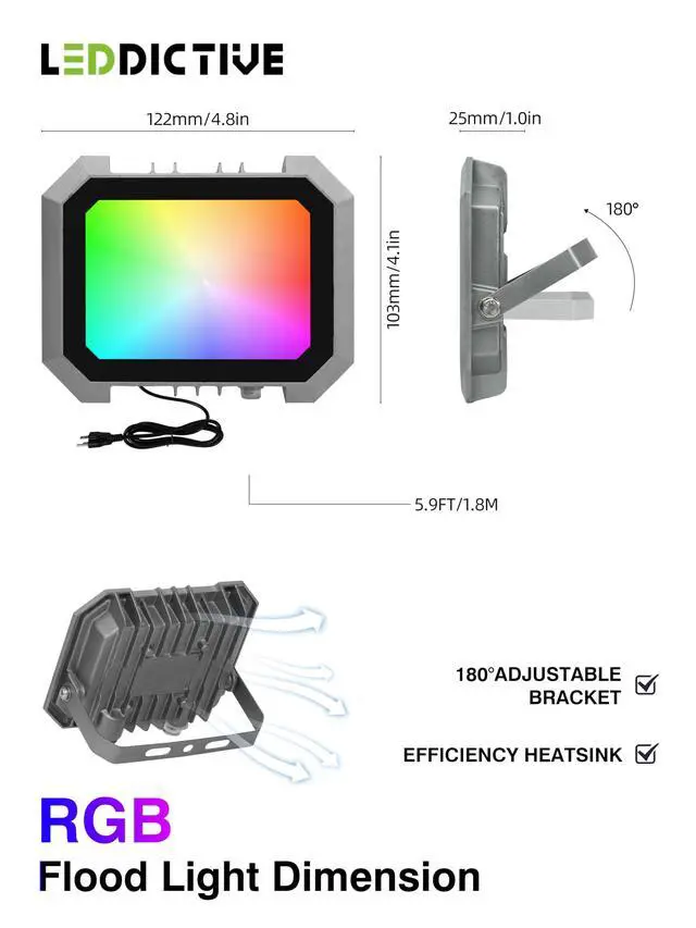 16 Colors, 4 Modes The LED smart floodlight comes with 16 different colors (R, G, B, W) and 4 lighting modes. Whether you want to use it for daily lighting or holiday activities, you can choose your favorite color and mode, and one light can meet all your needs.