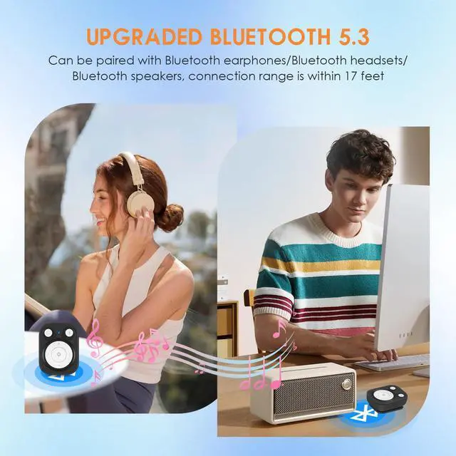 Upgraded Bluetooth 5.3 & Support Multiple Formats The mini music player, Latest Version of Bluetooth 5.3 means faster transmission speed, longer connection distance, and stronger anti-interference ability. Reduced power consumption for more power savings. Support MP3/WMA/APE/FLAC/WAV/OGG/AAC formats.