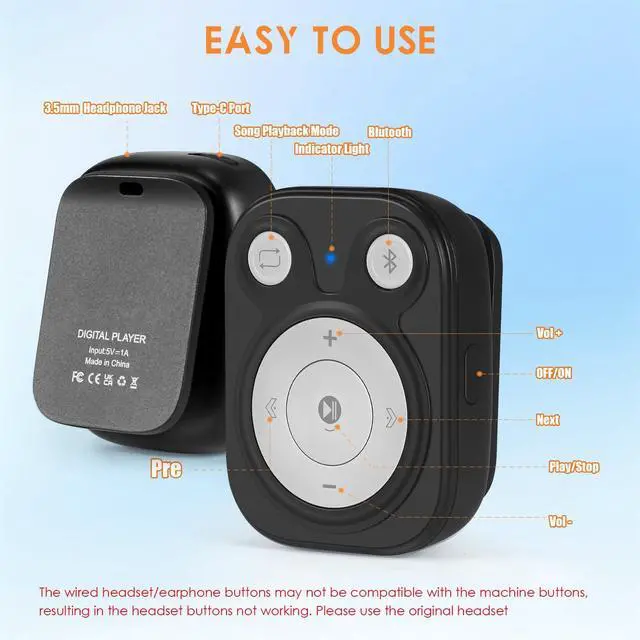 The Great Gift The package contains an mini mp3 players, wired earphones, and a Type-C data cable. It makes an ideal gift for your children, partner, parents, or family on birthdays, Christmas, Thanksgiving, and other special occasions.