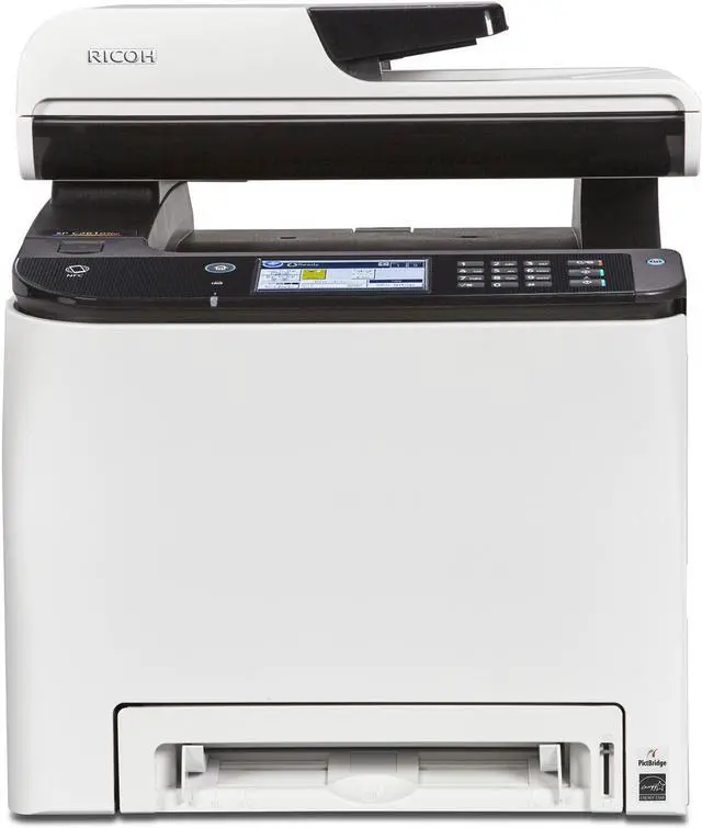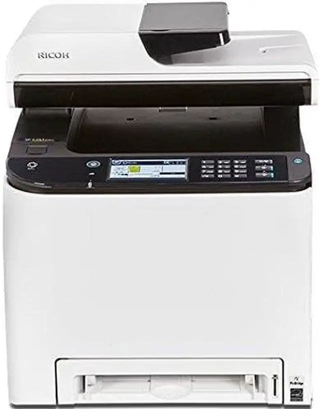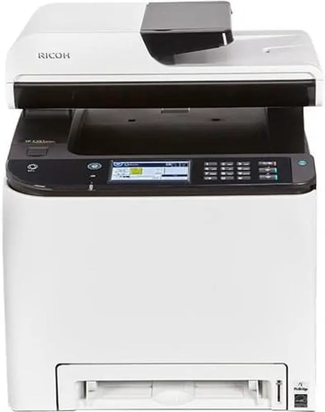 Enjoy wireless connectivity and a full feature set for your office with the SP C261SFNw All-in-One Color Laser Printer from Ricoh. The full-color unit features printing, scanning, copying, and faxing, as well as print speeds of up to 21 ppm for increased productivity. As a relatively compact printer, it will be easier to find a spot in your business without giving up any features. It also ensures high-quality printing with a max resolution of up to 2400 x 600 dpi and it can work with a multitude of document types up to 8.5 x 14" in size.