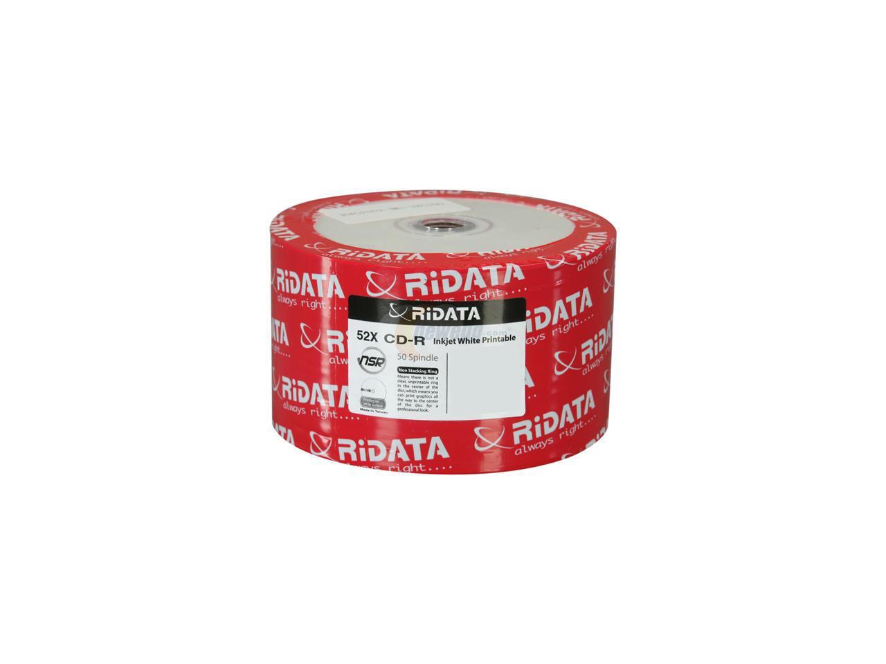 RiDATA 700 MB 52X CD-R Inkjet White Hub Printable 50 Packs Disc Model R80JS52-RD-IWN50
