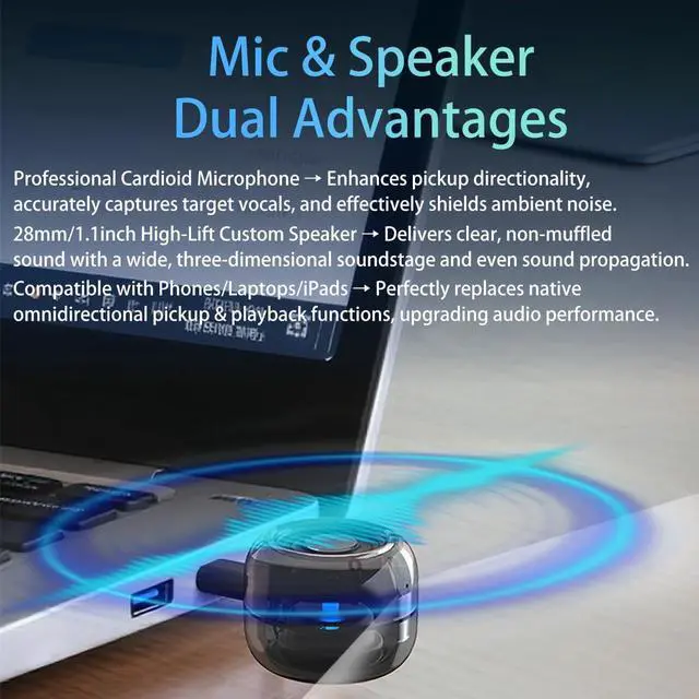 28mm custom speaker. Powerful sound. Plug-and-play. Compact gadget gift.